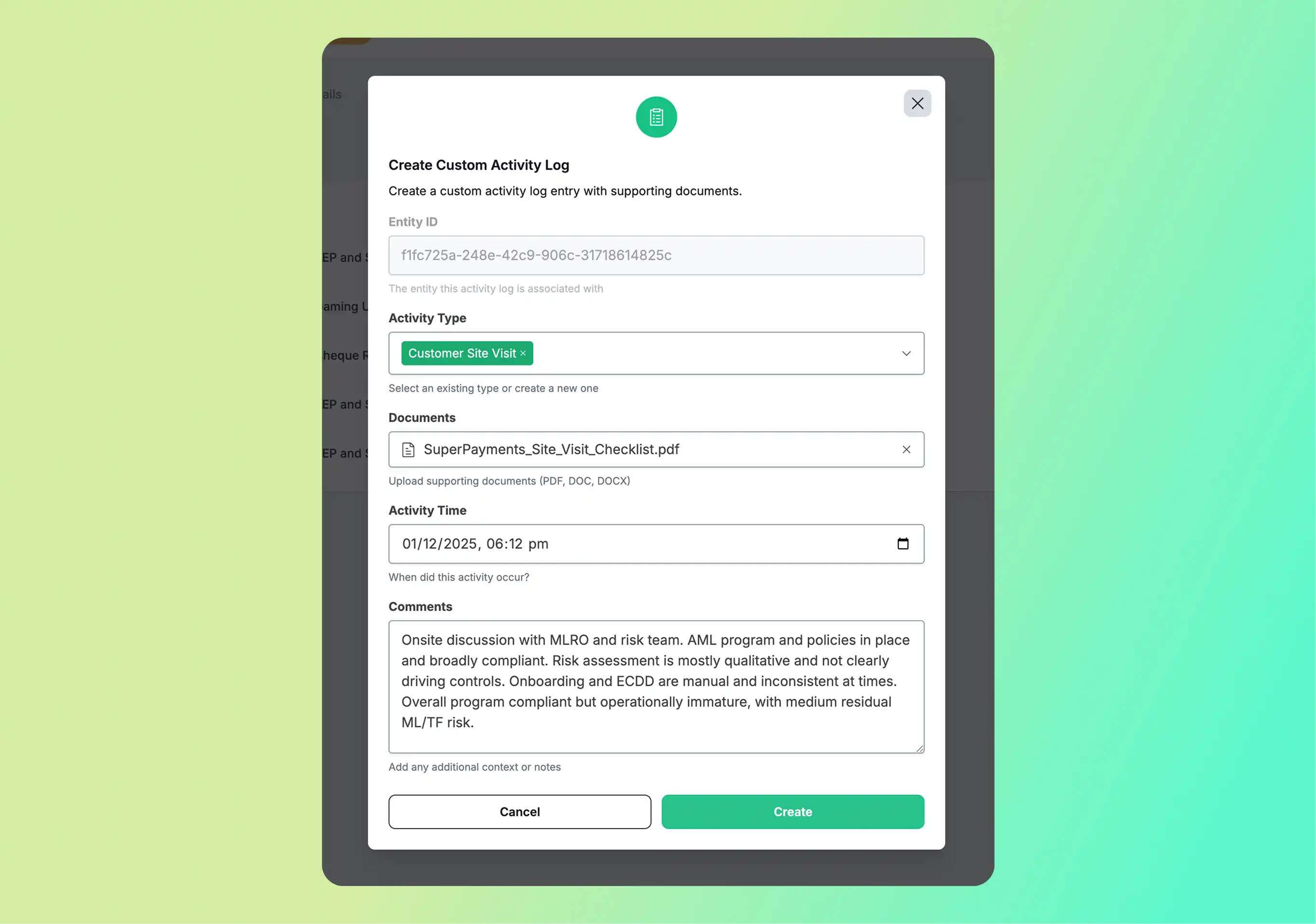 UARs (Unusual Activity Reports) AKA investigations, and SMRs (Suspicious Matter Reports) are amongst the key compliance records that teams must retain. To this day, they are commonly stored in folders and network drives and tracked using spreadsheets, making them hard to find and impossible to build intelligence against. You can now log all your historic UARs and SMRs against an entity profile, to consolidate and retain these reports. Over time, you can use this to drive further intelligence, such as elevating an entity’s risk score depending on how many UARs and SMRs are logged against them.